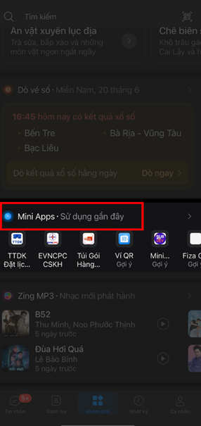 Bước 1: Mở ứng Zalo trên điện thoại và chọn mục “Khám phá” ở hàng dưới cùng.