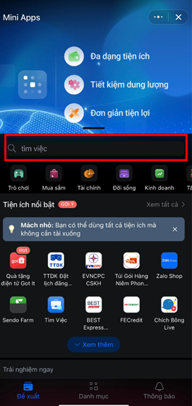 Sau này, App sẽ hiện vào ô “Tiện ích nổi bật”. Ta có thể dễ dàng bấm vào và không cần gõ tìm kiếm cho lần sau.