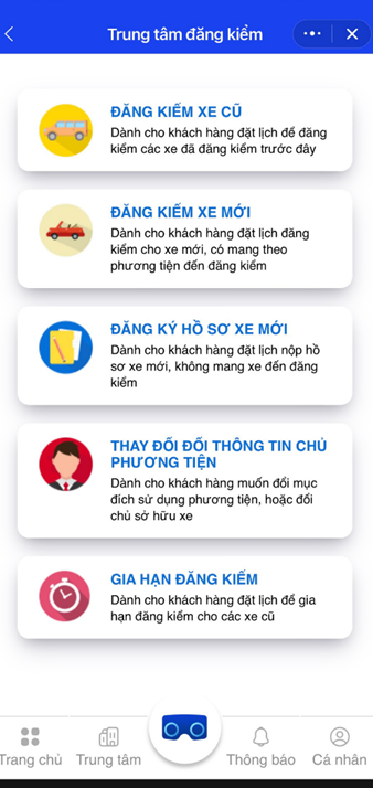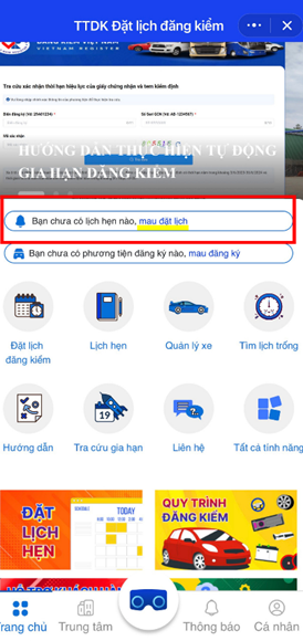 Hướng dẫn các bước đăng ký lịch đăng kiểm qua Zalo