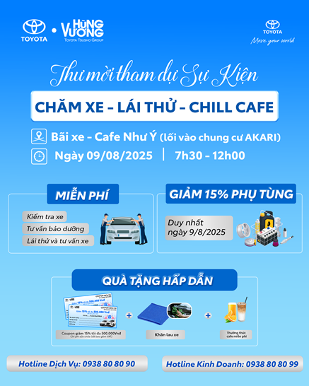THƯ MỜI THAM DỰ SỰ KIỆN ĐẶC BIỆT: “CHĂM XE – LÁI THỬ – CHILL CAFE” CÙNG TOYOTA HÙNG VƯƠNG